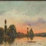 DELPY Henri Jacques – Barques sur la rivière au soleil couchant – 2