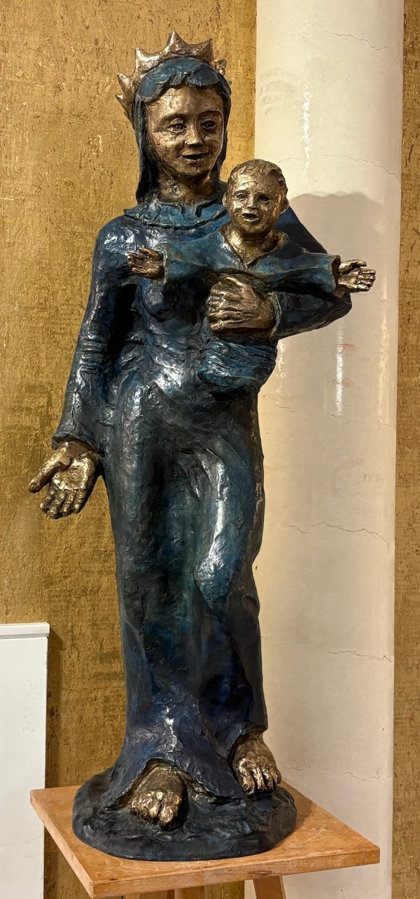 RAABE Michel – Sainte Marie portant l’Enfant Jésus – 108 cm – patine bleu foncé