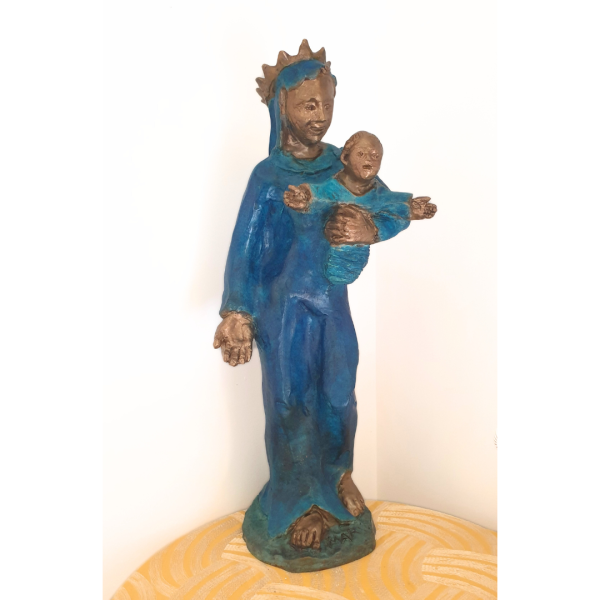 RAABE Michel – Sainte Marie portant l’Enfant Jésus – 60 cm, patine bleue